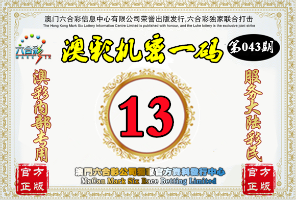 043期【澳门机密】💯一码中特💯官方正版💵